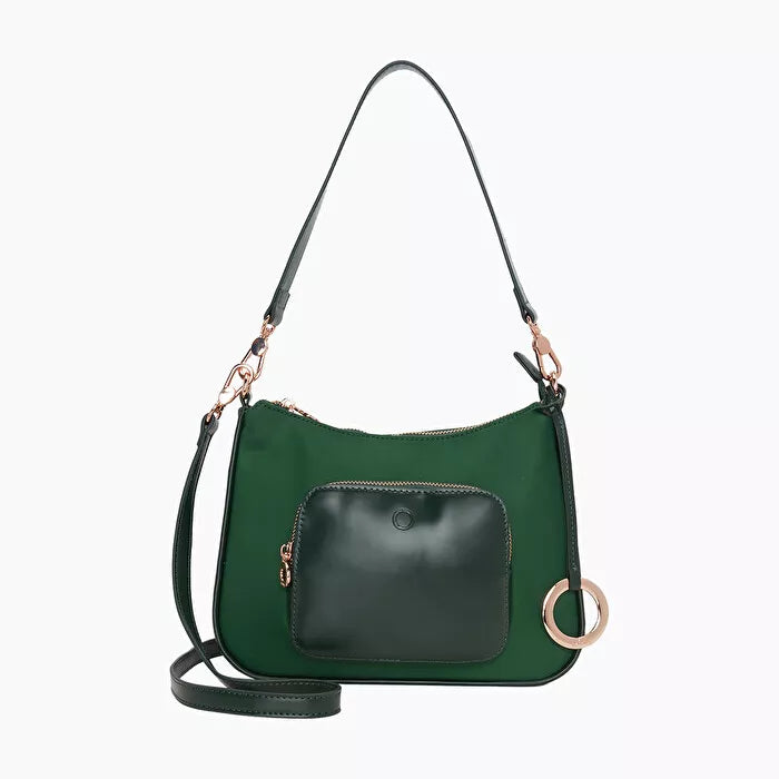 Nusegamos ilga ir trumpa rankena. Ilga rankena yra reguliuojama. Viduje ir išorėje turi kišenėles. Išorinė kišenėlė su užtrauktuku. Rankinė pagaminta iš nailono – praktiškos, lengvos ir vandenį atstumiančios medžiagos, kuri yra blizgi ir maloni liesti. Metalinės detalės.