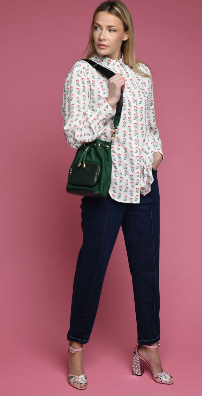 Nusegamos ilga ir trumpa rankena. Ilga rankena yra reguliuojama. Viduje ir išorėje turi kišenėles. Išorinė kišenėlė su užtrauktuku. Užtraukiama raišteliais. Rankinė pagaminta iš nailono – praktiškos, lengvos ir vandenį atstumiančios medžiagos, kuri yra blizgi ir maloni liesti. Metalinės detalės.
