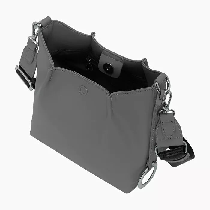 Minkšta ir švelni rankinė su magnetiniu užsegimu ir reguliuojama rankena. Rankena nusisega. Dėl savo formos ir dizaino, puikiai tinka laisvalaikiui ar progai.
